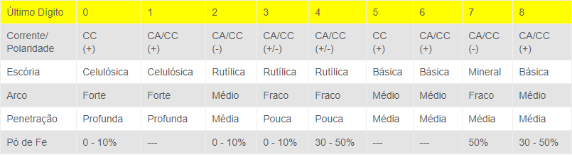 O quarto dígito é de extrema importantância para conhecermos o eletrodo revestido que temos em mãos! Este permite saber: