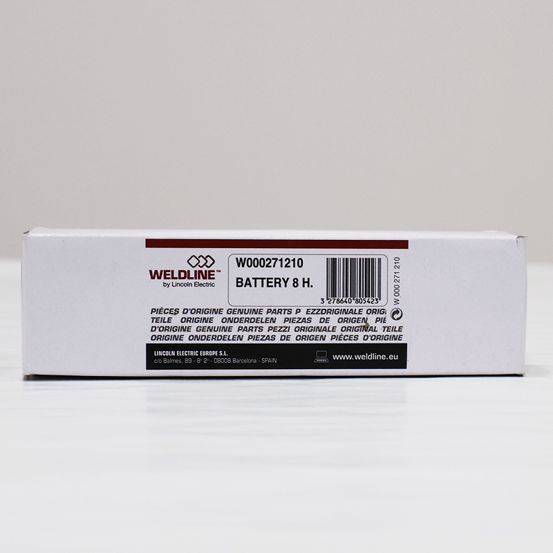 Bateria da Weldline by Lincoln Electric, para máscaras ventiladas Zephyr LS e Flip'Air LS. Com vida útil de aproximadamente 8 horas (± 5%).