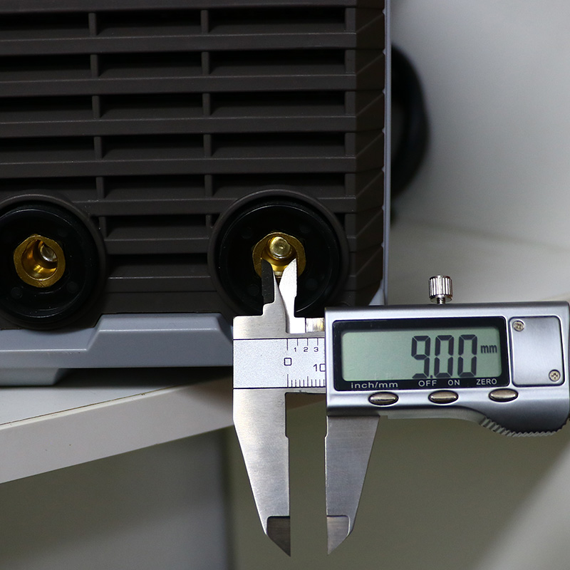 Conector macho para ligação do porta eletrodos ou do cabo de massa à máquina.