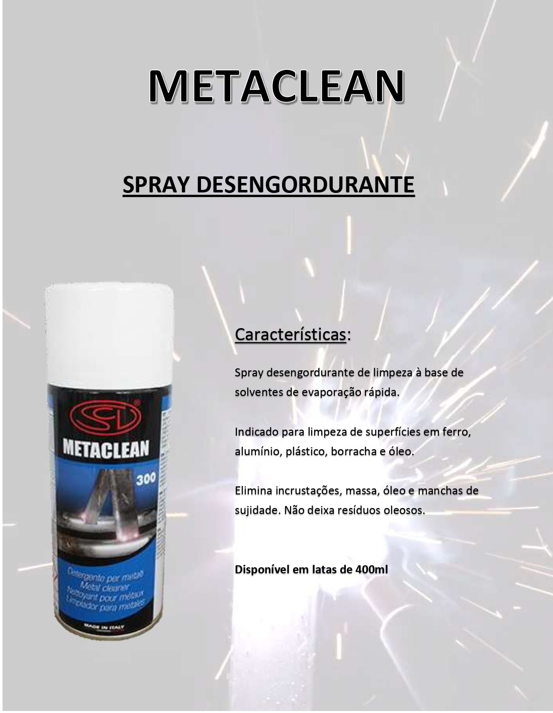 Spray de limpeza (METACLEAN) - Desengordurante de limpeza á base de solventes de evaporação rapida - Lt de 400 ml