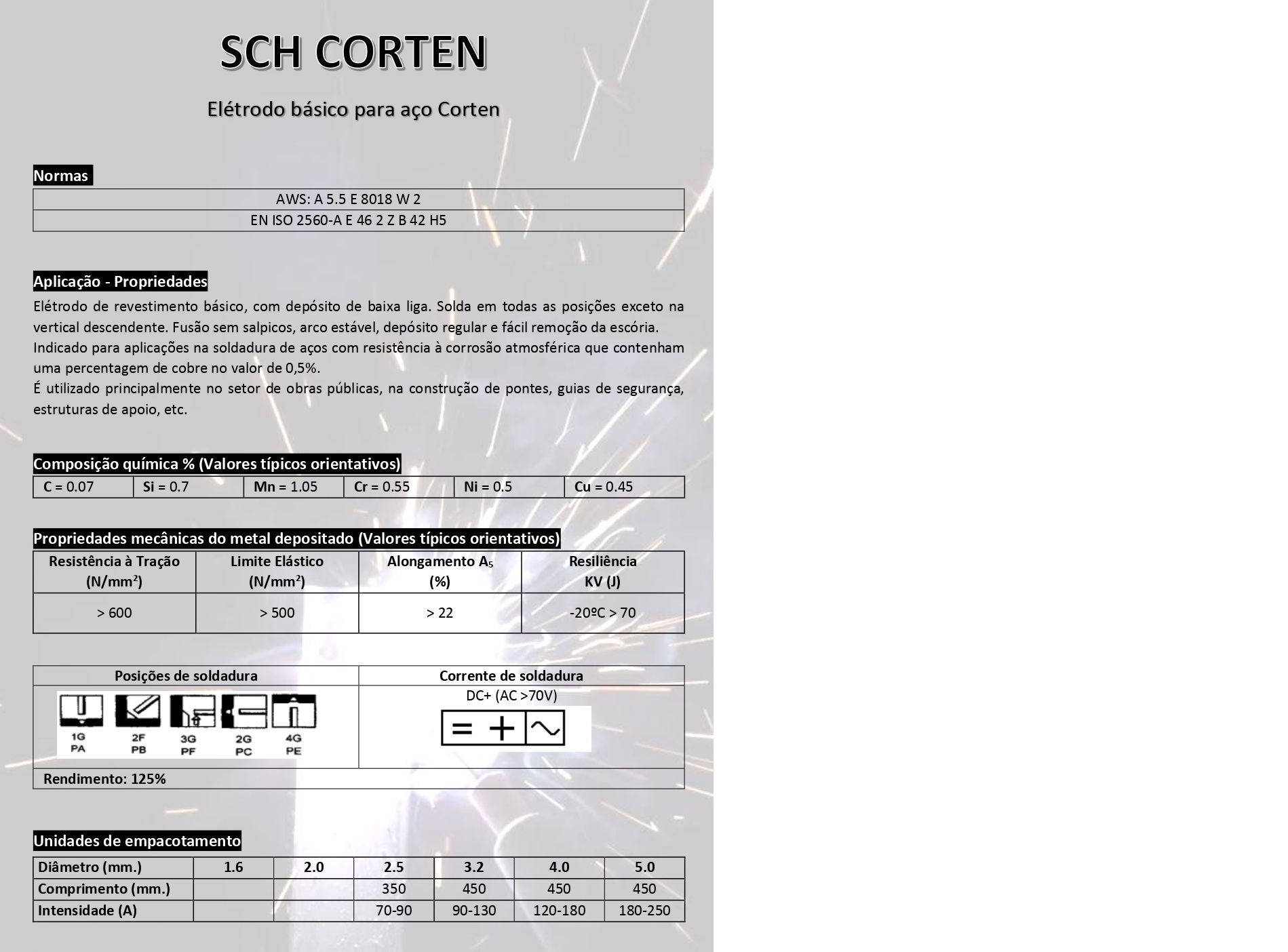 Elétrodo basico, com deposito baixa liga, para soldadura de aços Corten.