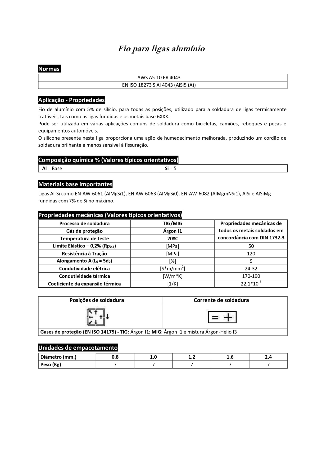 - EN ISO 18273: S AI 4043 (AISi5)