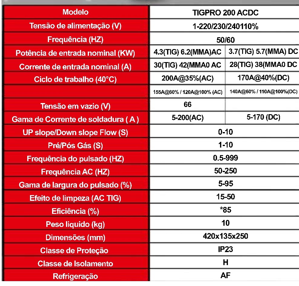 Excelente opção qualidade/preço para quem procura um Aparelho AC/DC para soldar Alumínio do processo TIG.