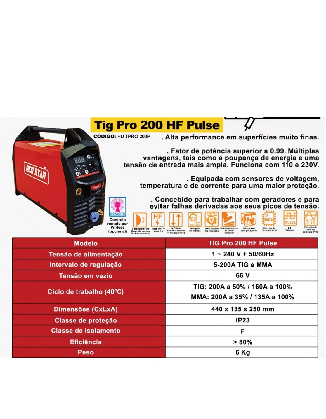 Equipamento RedStar TIG PRO 200 HF Pulse
