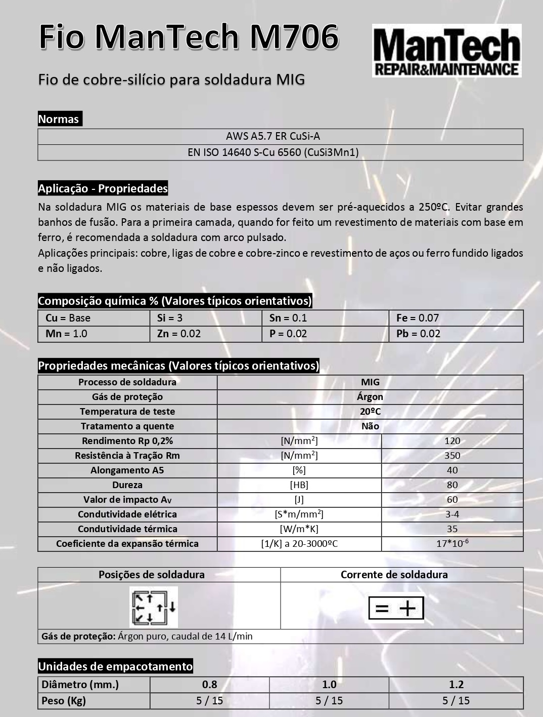 Deve ser utilizada no processo MIG com protecção gasosa Árgon.