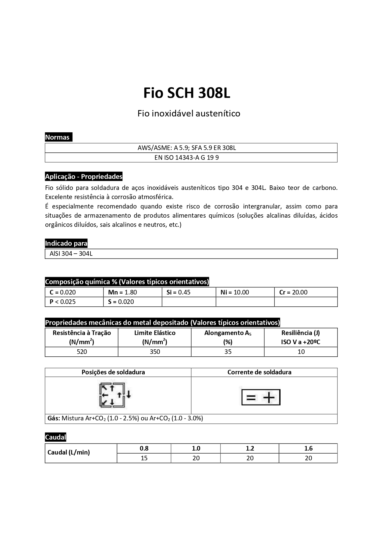 O arame para a soldadura de aços inoxidáveis austeníticos Cr-Ni, de baixo carbono do tipo 304 e 304L.