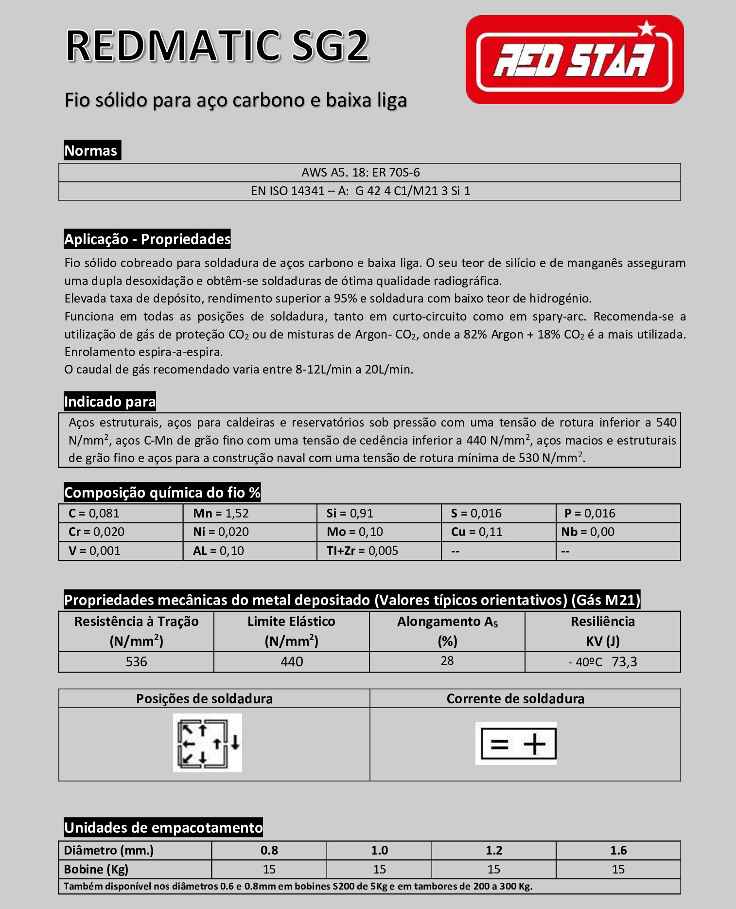 Fio Arame Sólido REDMATIC SG2 ER-70S-6 Bobine 5 Kg