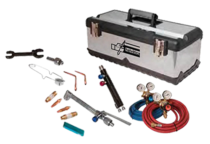 Kit Oxi-Acetileno modelar numa mala, para soldar e cortar e é composto por :