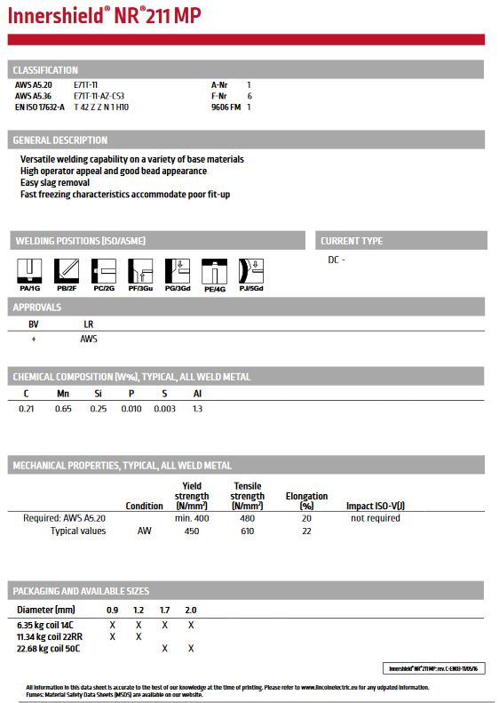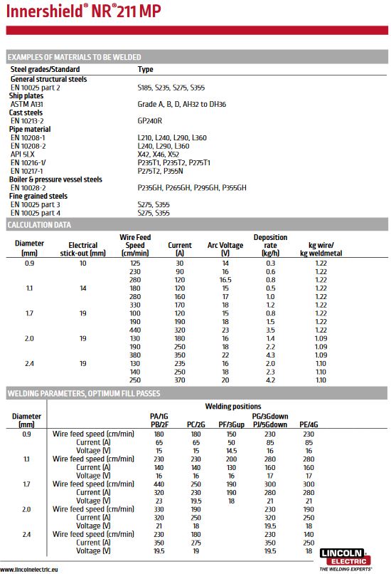 - EN ISO 17632-A: T 42 Z Z N 1 H10