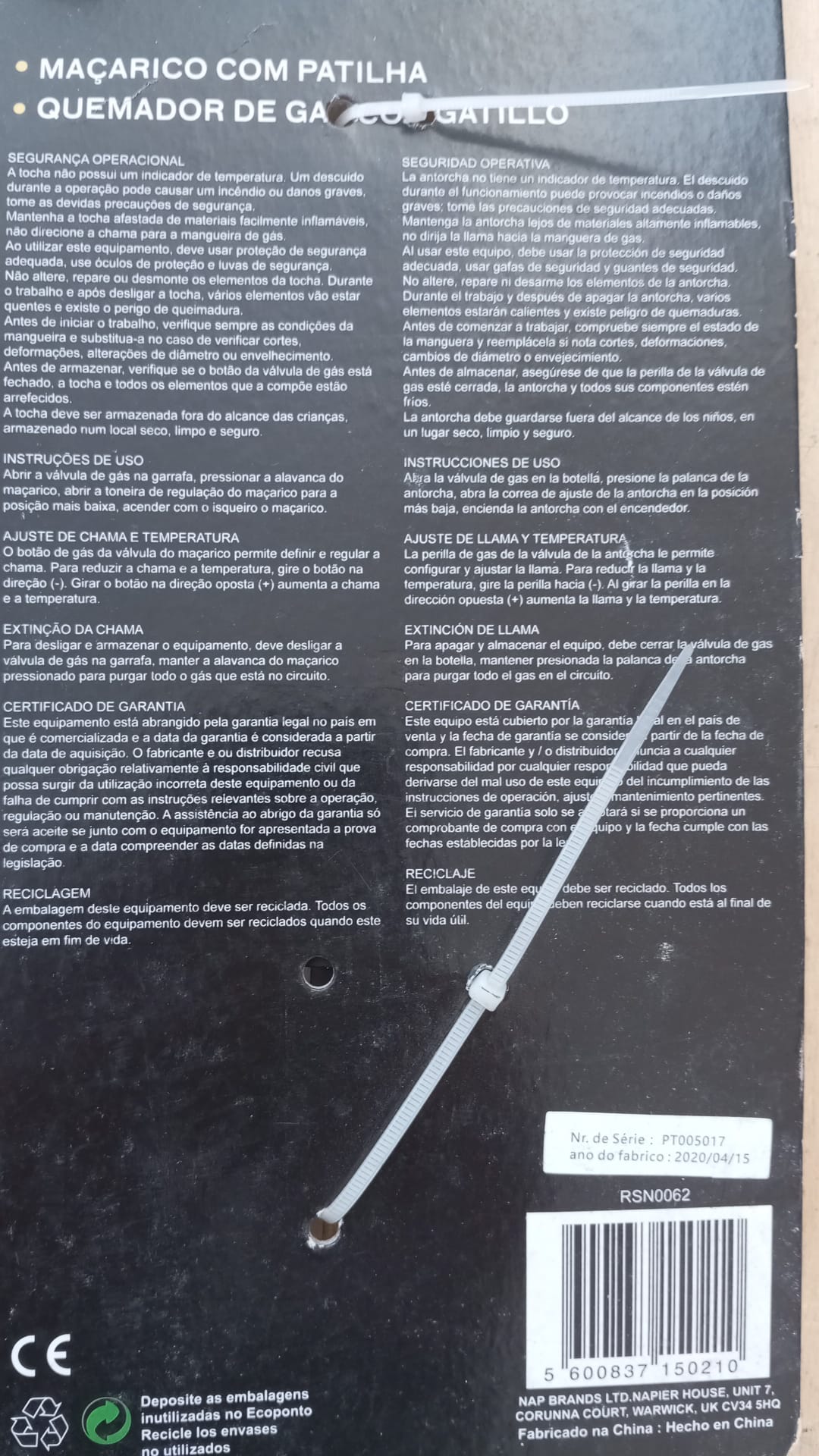 Maçarico de aquecimento a gás (propano / butano) com regulador da chama e gatilho de segurança, ate 180º C.
