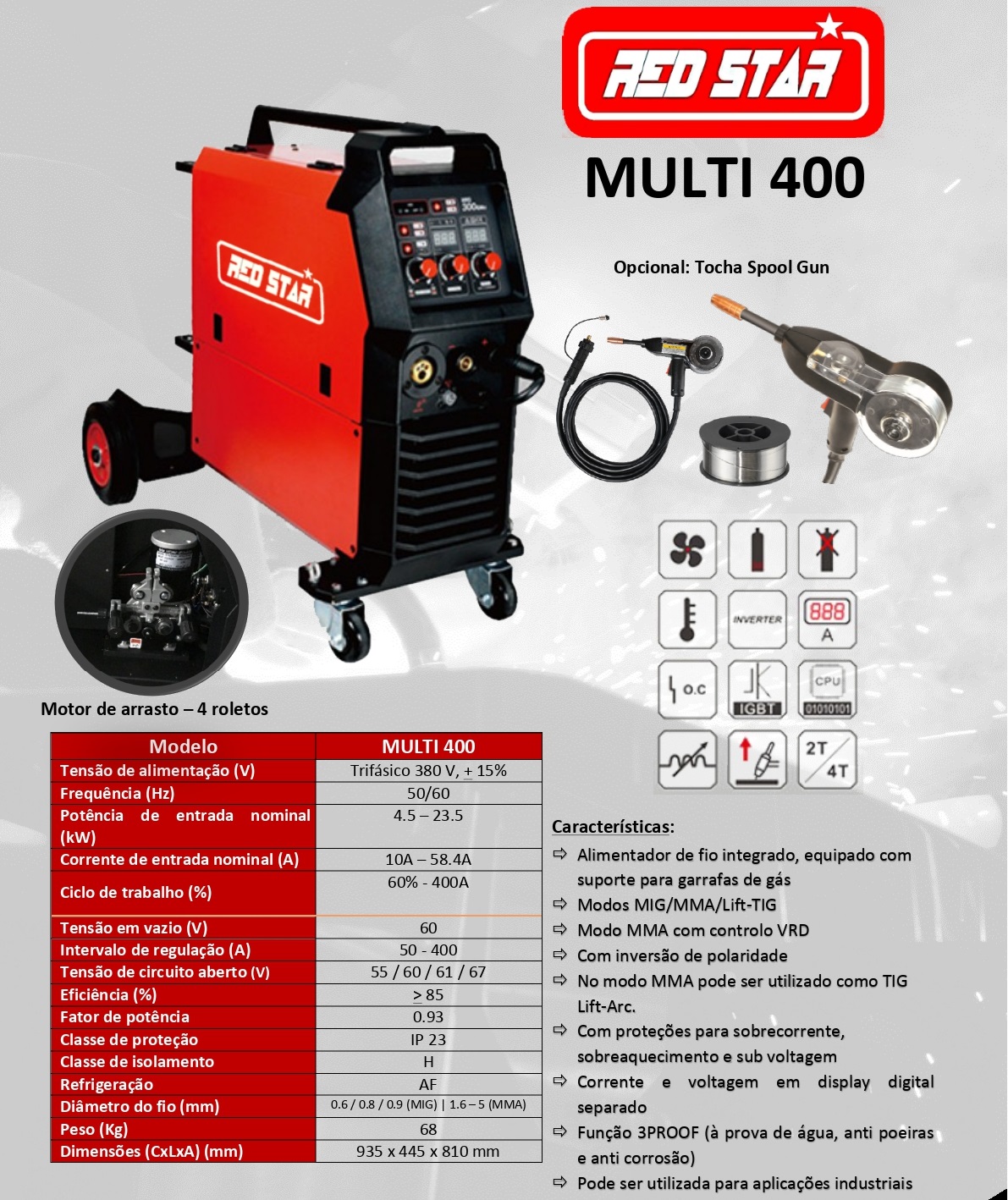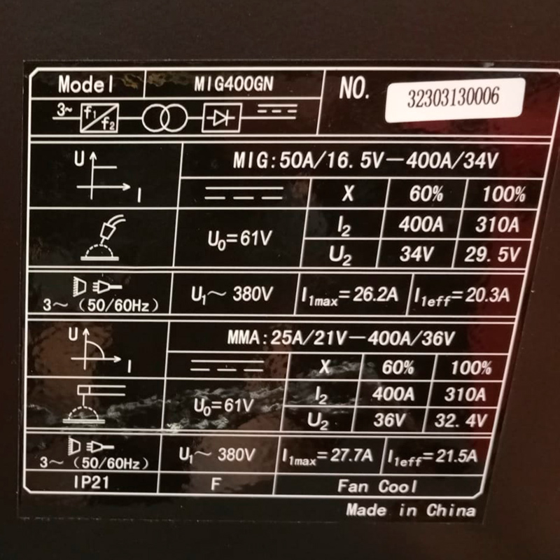 Máquina soldar trifasica ( 400V) compacta para multiprocessos MIG/MAG, Electrodo e TIG Lift Arc.