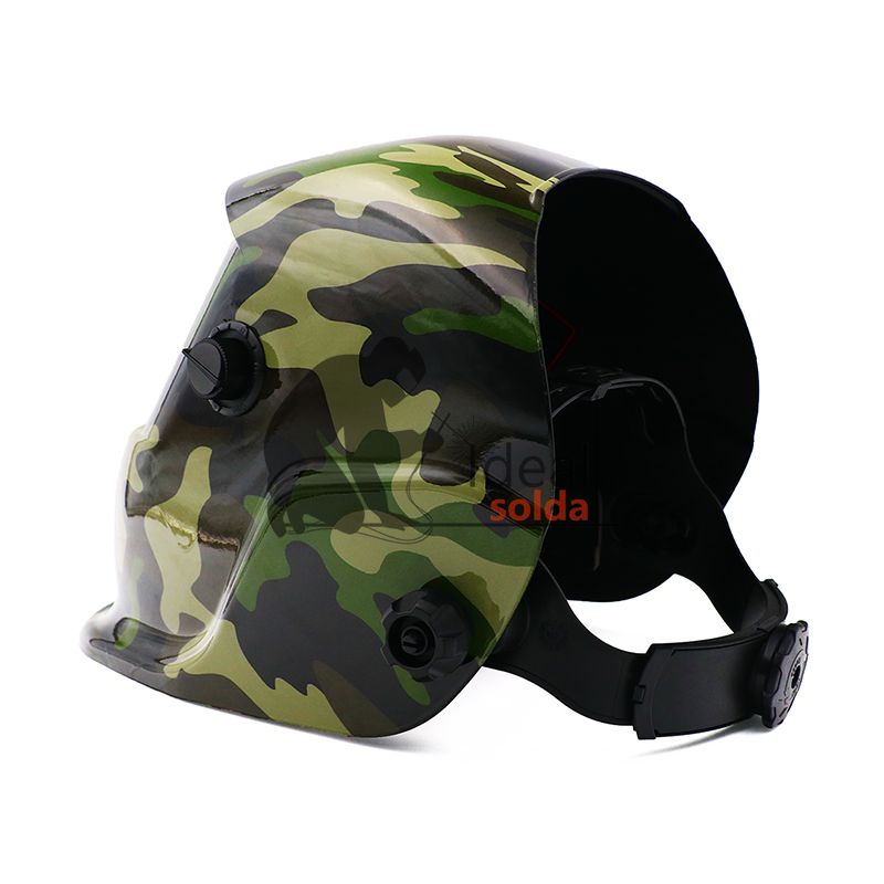 A Máscara Automática CAMOUFLAGE é desenhada para ser utilizada em todos os tipos de procedimentos de Soldadura: Eletrodo, MIG MAG, TIG, Corte de Plasma e Rebarbagem.