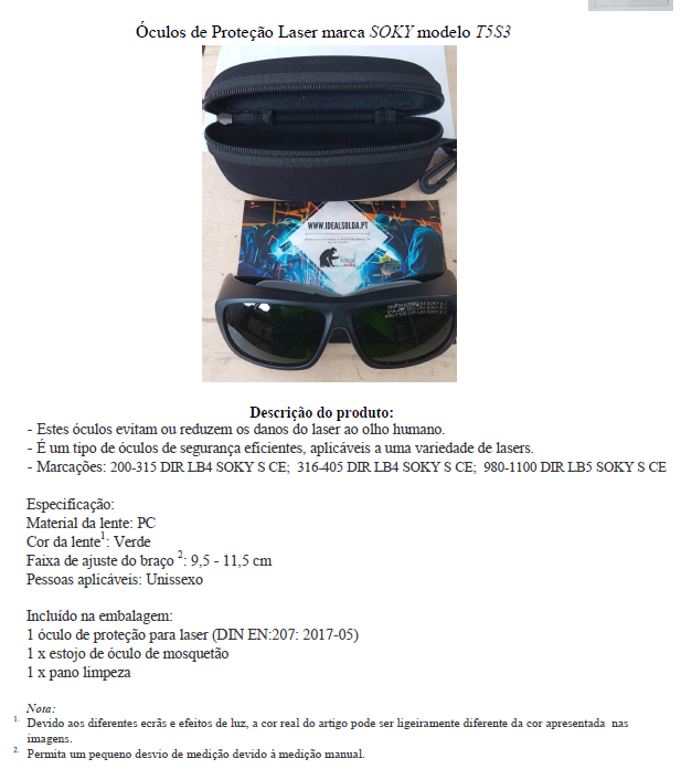 Óculos de Proteção Laser marca SOKY modelo T5S3