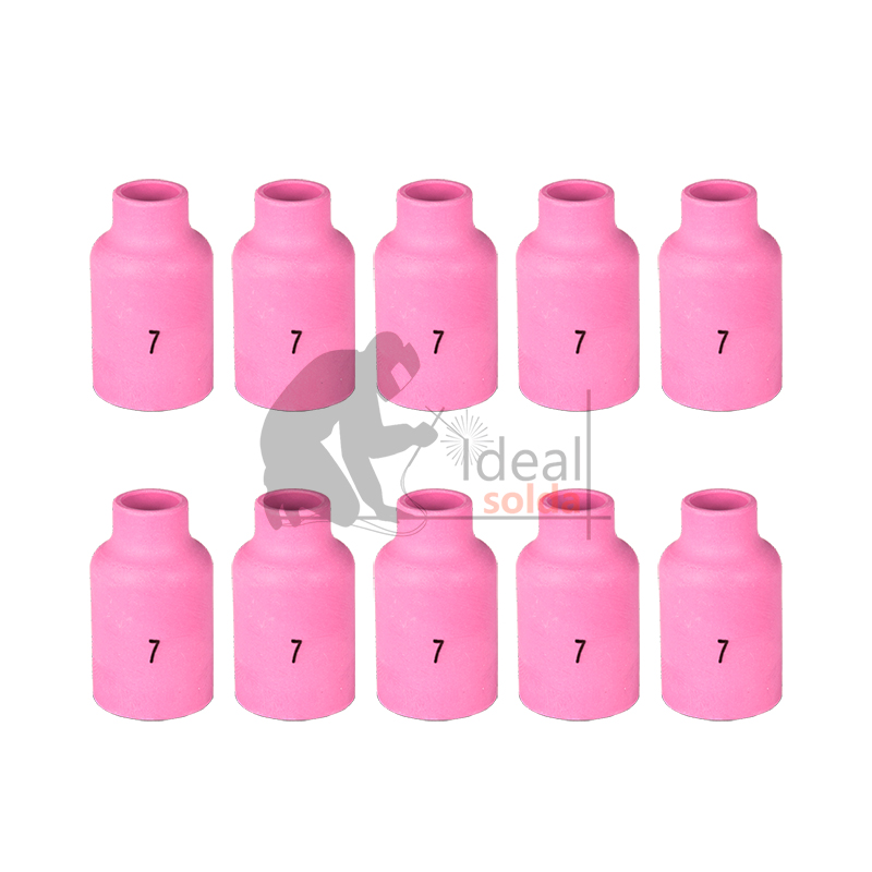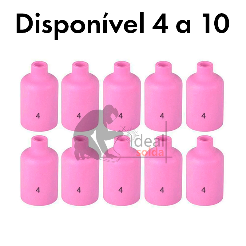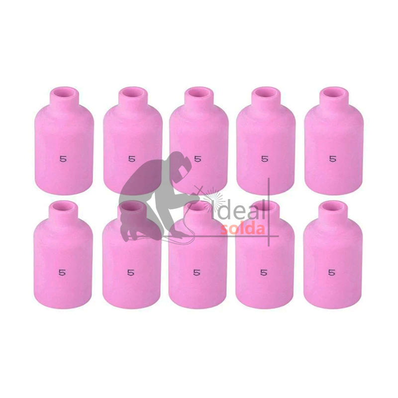 Pack composto por 10 bocais cerâmicos para DIFUSOR GAS LENS, compatível com as seguintes tochas TIG: 17 | 17V | 18 | 18V | 26 | 26V