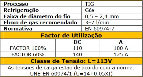 É fornecida com todos os acessórios, à exceção do eletrodo de tungsténio e da ficha de ligação a maquina (pois varia de marca de equipamento)