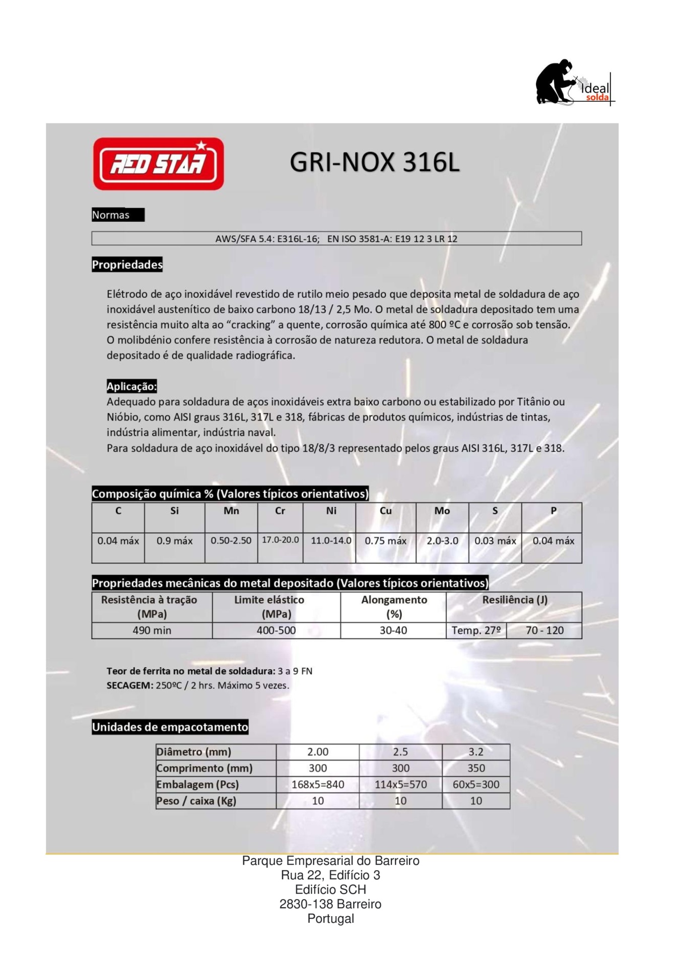Elétrodo de aço inoxidável básico para aços inoxidáveis 316L ou equivalentes.