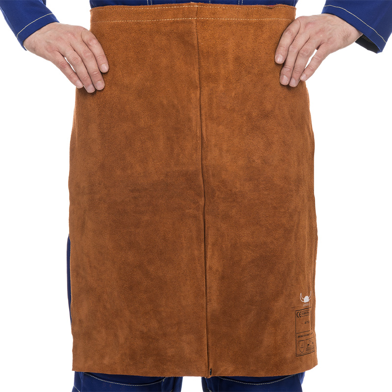 Este avental sem peito, é fabricado em pele de vaca de qualidade superior e possui cintura ajustável com fecho de mola.