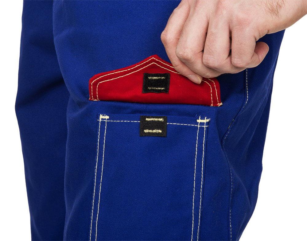 Calças de soldador muito confortáveis e flexíveis, fabricadas em algodão ignífugo de 305 gr/m2.