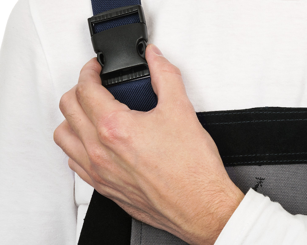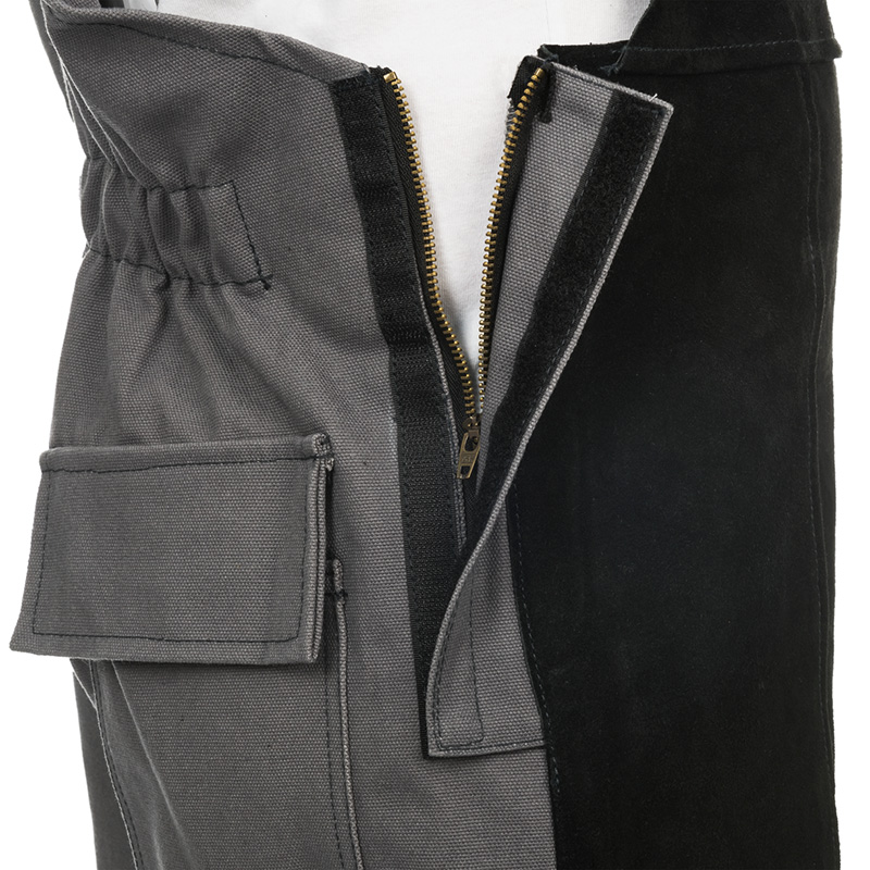 Jardineira de soldador, muito confortável e flexível, com reforços em pele de vaca.