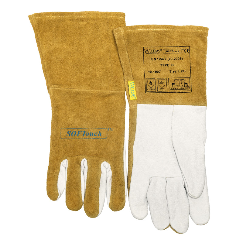 Luva para o Processo TIG, muito macia e flexível para máxima sensibilidade. A palma da mão é fabricada em pele de cabra e as costas e o canhão em pele de vaca de qualidade superior. As costuras são em Kevlar para maior durabilidade.